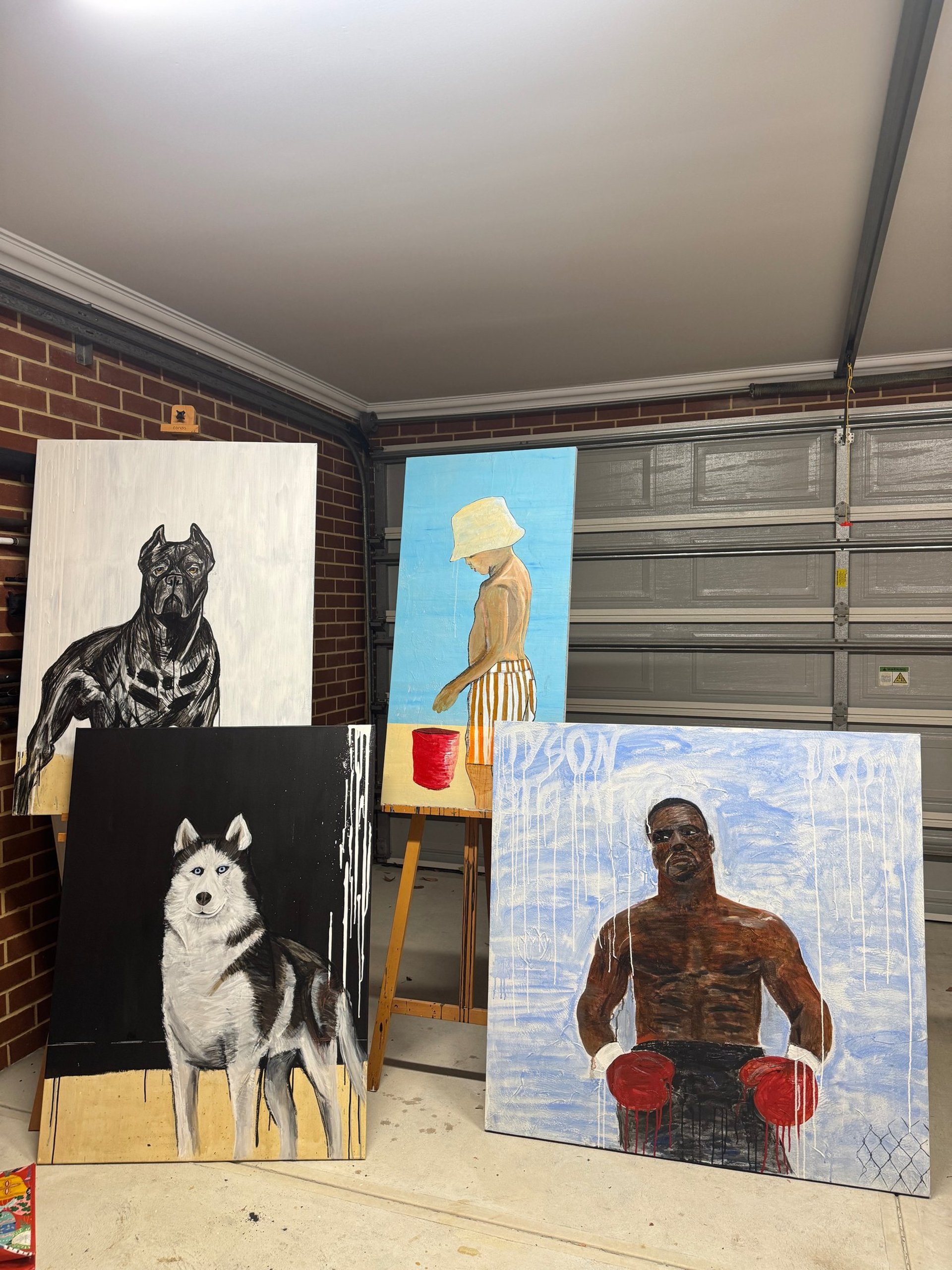 Tom McKenna is a visual artist in Perth, specializing in acrylic and mixed media. His practice includes portraiture and abstraction with layered paint and expressive brushwork.